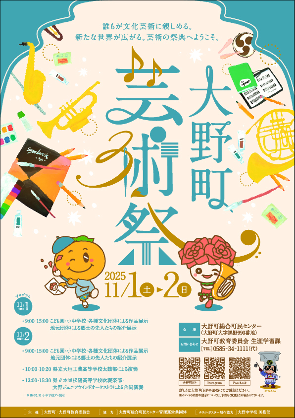 大野町総合町民センターにおいて、大野町芸術祭2025を開催します。