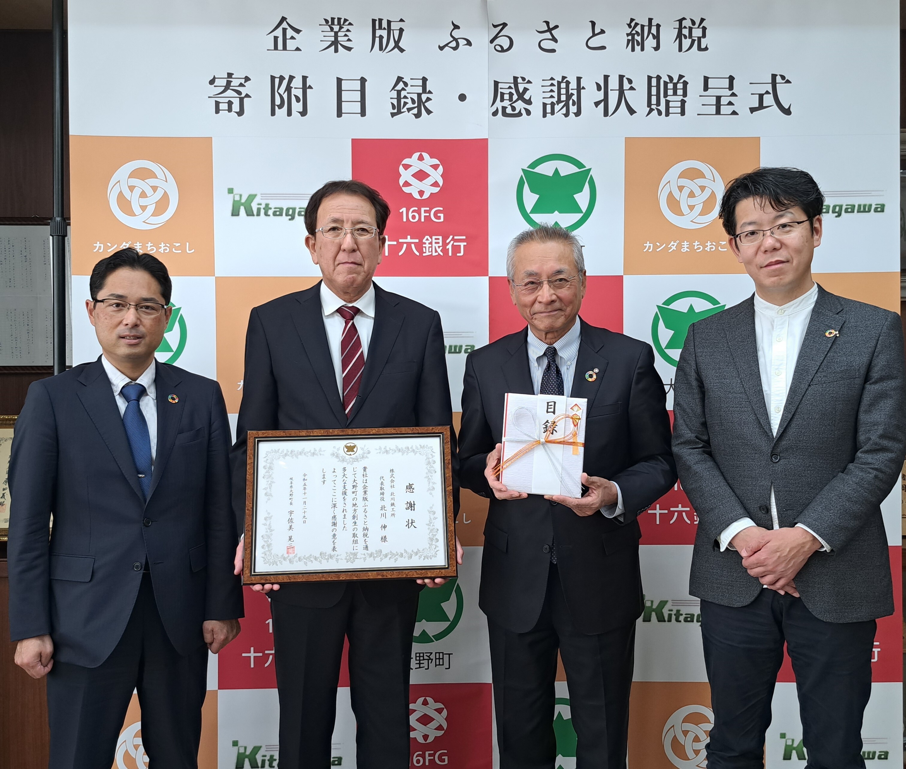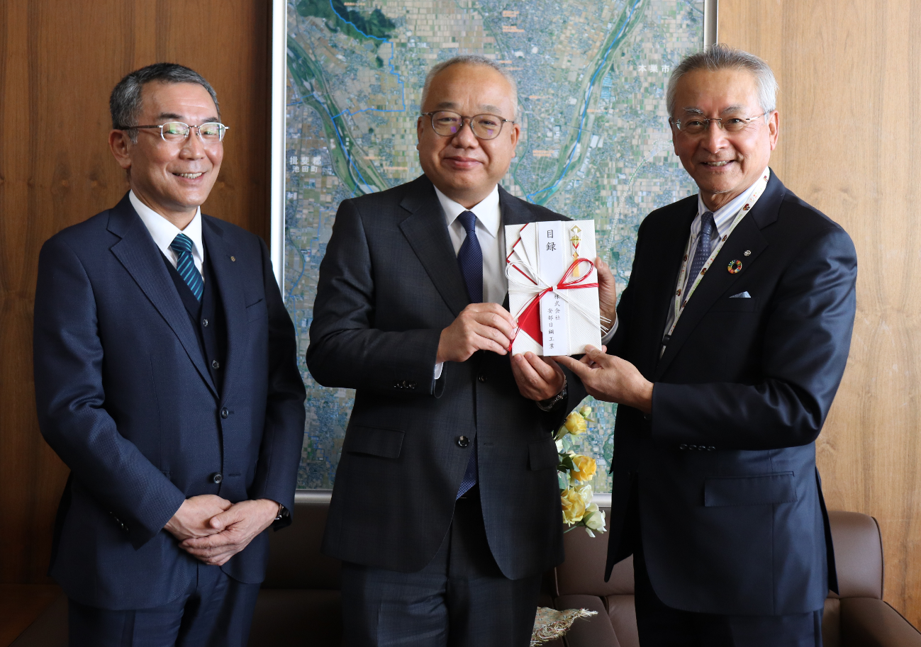 このたび、(株)北川鉄工所様から、町の発展を願い、寄付をいただきました。