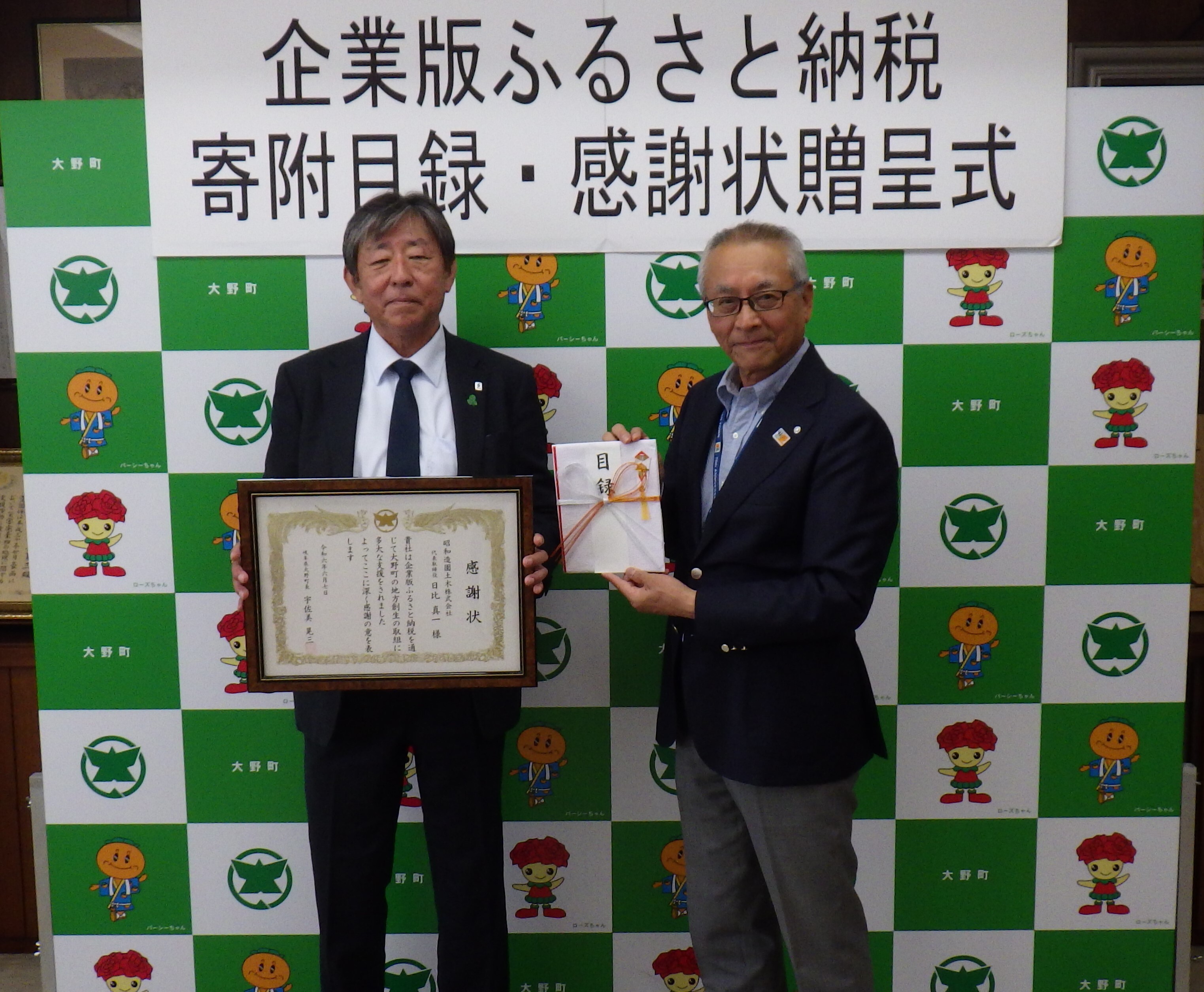 このたび、(株)EMD様より、町の発展を願い、寄付をいただきました。