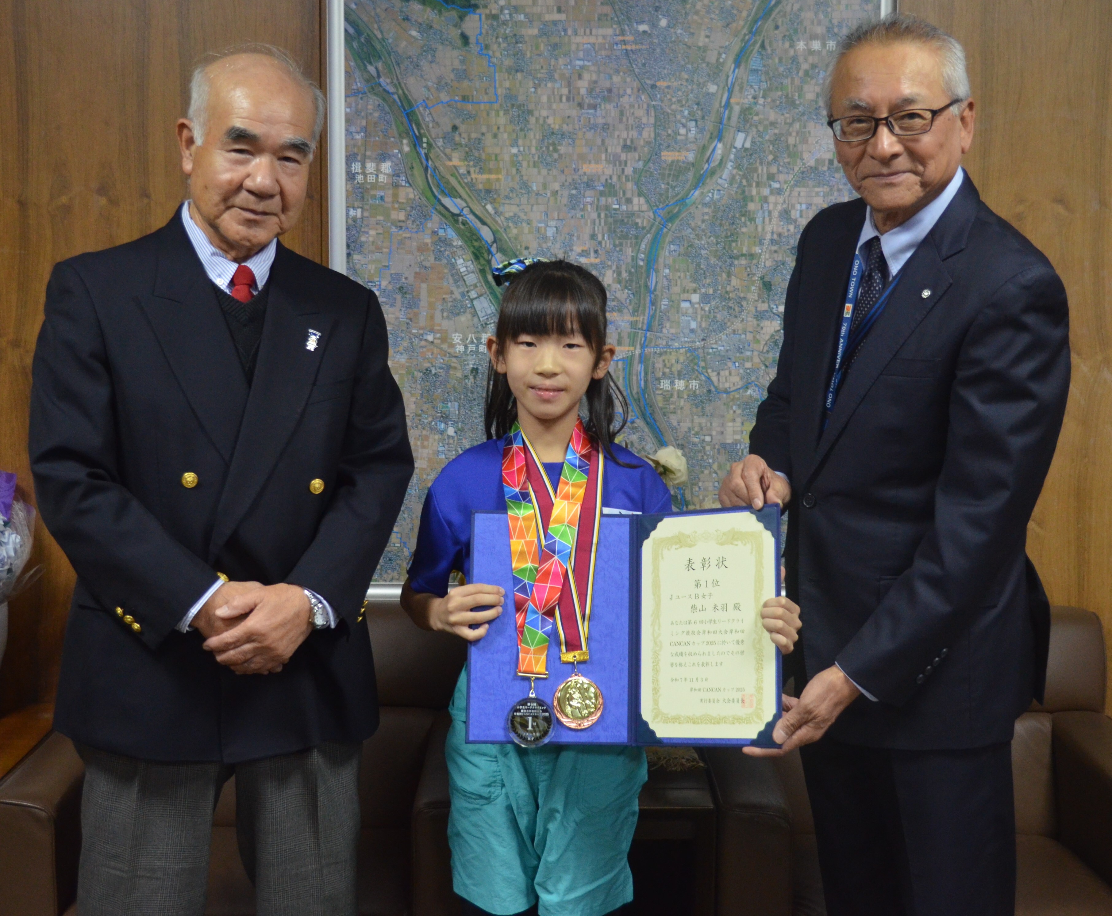 町長は「3位入賞おめでとう。楽しんで競技ができることはとても良いこと。もっと良い成績を残してほしい。」と述べました。
