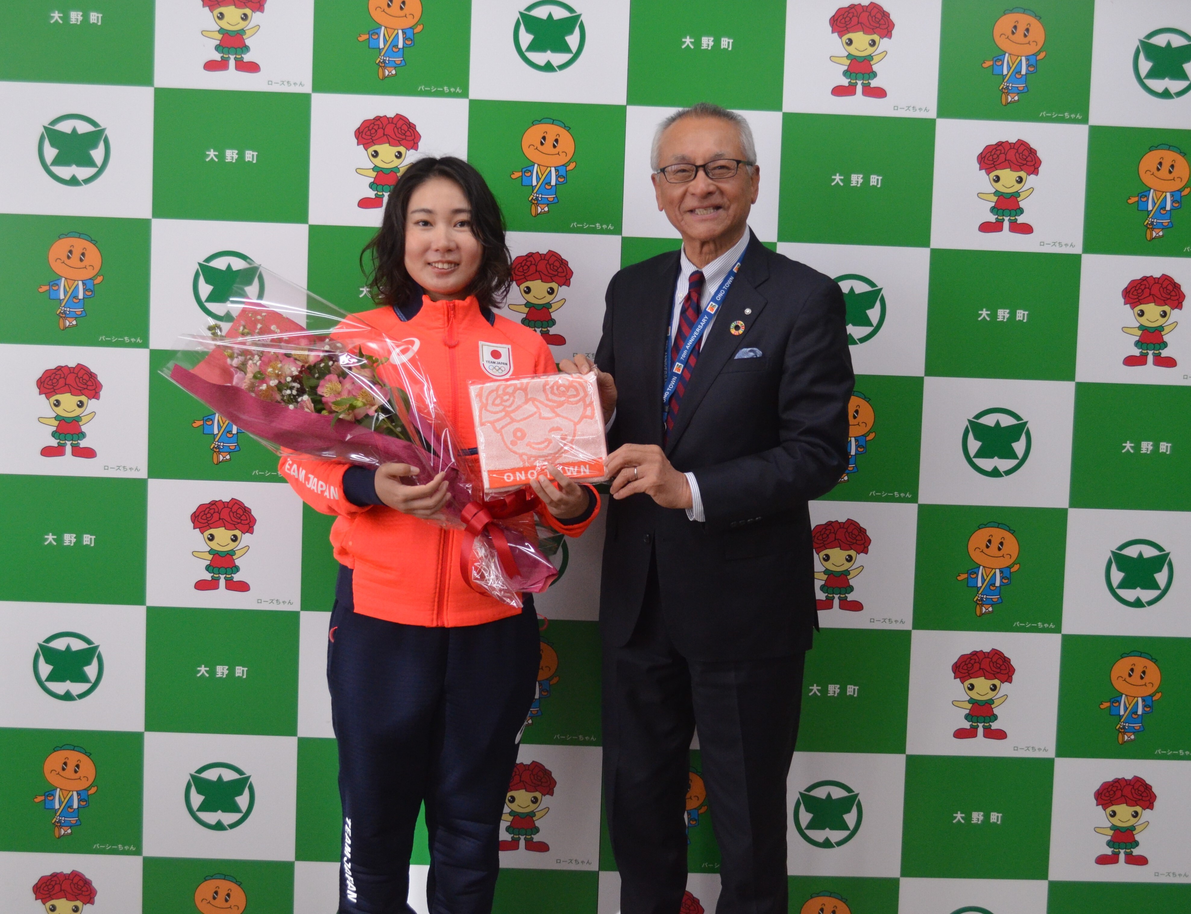 町長は「有言実行で出場権を獲得したことは素晴らしい」「挑戦者として自分らしさをだして、なによりも楽しんで競技をしてほしい」と激励しました。